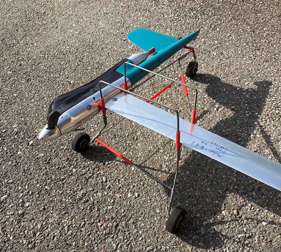 View of an F2A model: one blade prop, the pan, the dolly and the pipe